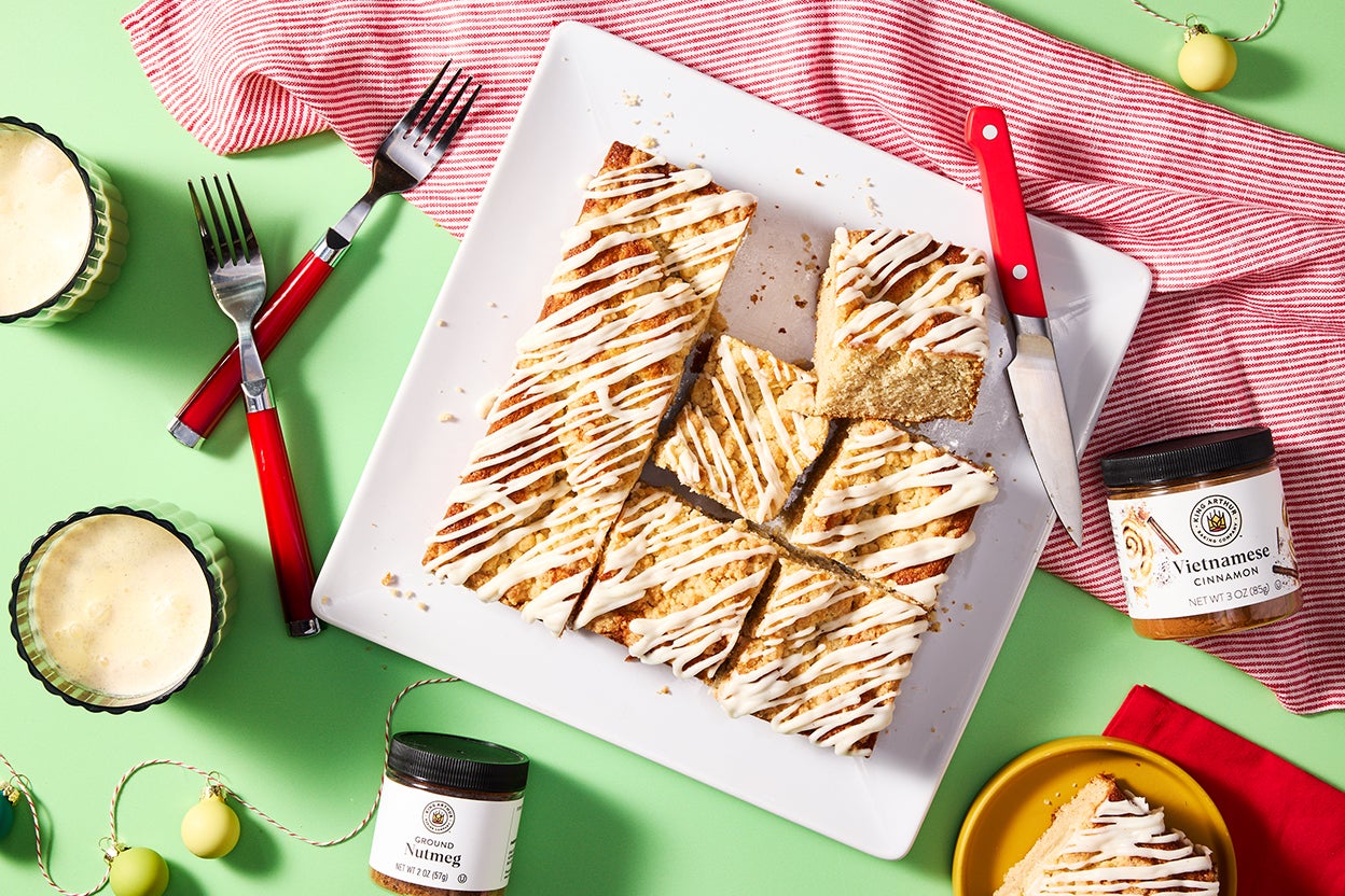 This eggnog coffee cake is the perfect way to savor the season with minimal effort. Its fine, tender crumb and rich, comforting flavors bring the essence of eggnog to your table, no eggnog necessary. Bake it up and enjoy a festive treat!