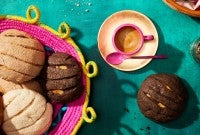 Compared to conchas, the ubiquitous and beloved pan dulce, chilindrinas have a thicker orange or yellow topping that’s left unscored (they crack naturally as the rolls proof and bake). To achieve the vibrant color, baker Mariela Camacho adds a dash of turmeric; she also sprinkles the shells with sparkling sugar right before baking for even more crunch.